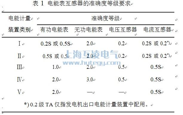 ( 3)各類電能計量裝置應配置的電能表、互感器的準確度等級不應低于表1所示值。